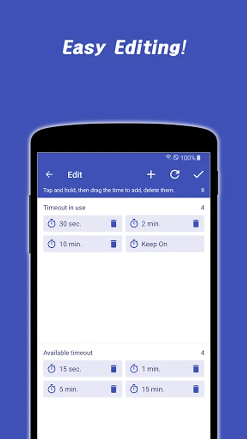When the device is not in use, set it to 15 seconds to save battery, and change the timeout when you put your device down and do other tasks such as reading text or playing the piano with sheets.