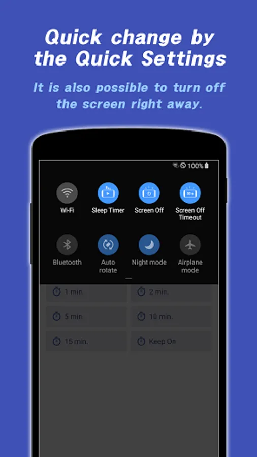 You can quickly turn off the screen with a single touch using Quick Setting or App Widget.