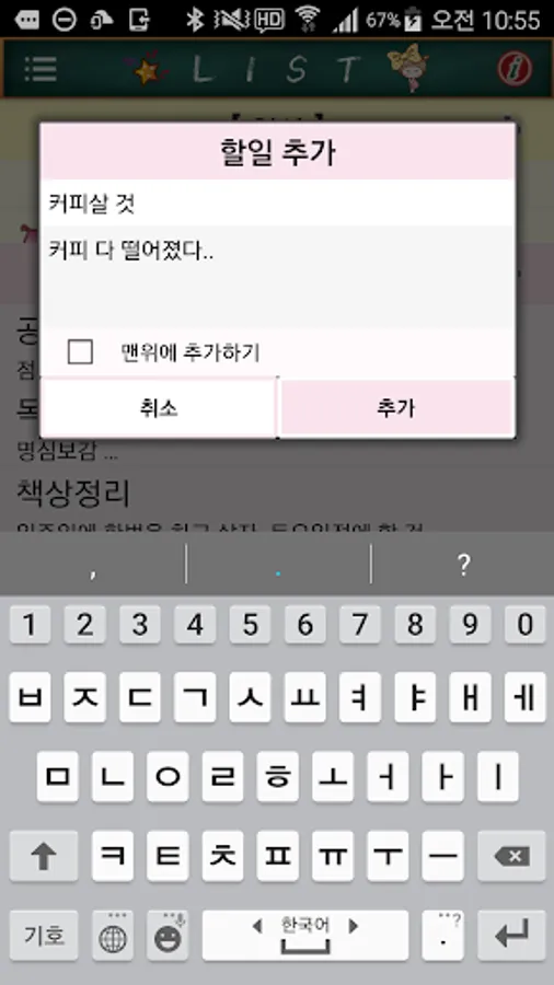 You can change the order of to do. Be the first to leave treatment work to be done upwards.
