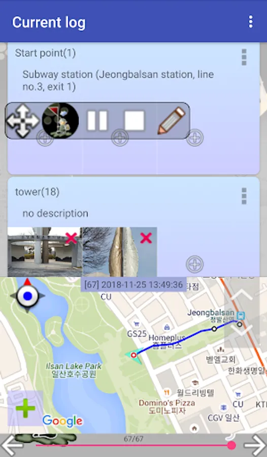 You can log photos and notes related to location, in any location you received, when you want.