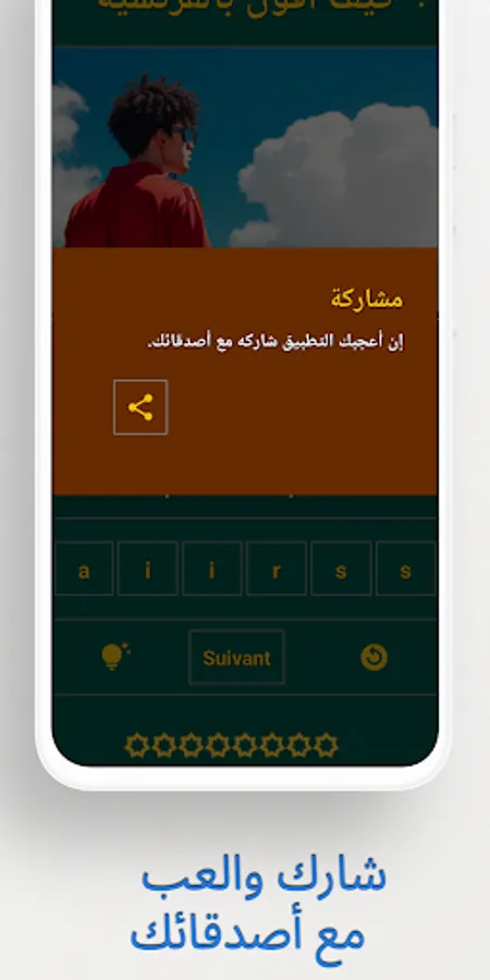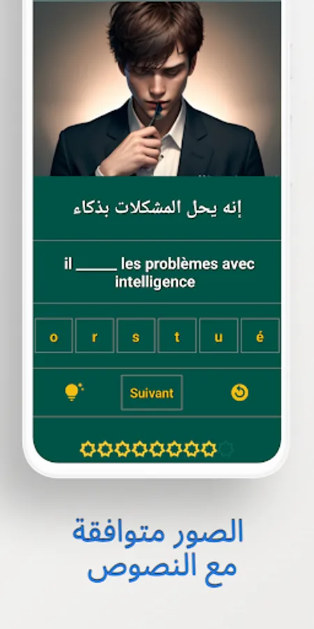 The application "How to say in French" is an innovative application that relies on artificial intelligence techniques to produce high quality text and images in the French language. This app features effective play-based pedagogy to enhance the learning process, in addition to providing multiple levels that allow users to improve their skills progressively.