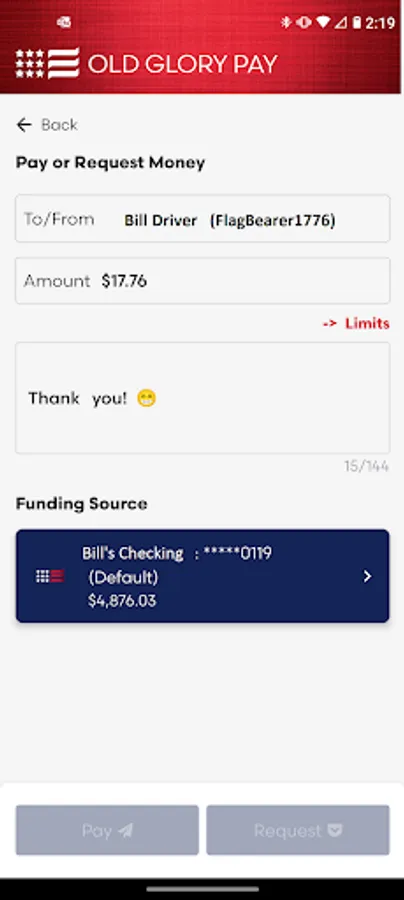 Old Glory Pay is Old Glory Bank's peer-to-peer (P2P) platform that’s America’s first digital cancel-proof payment system. With Old Glory Pay, existing Old Glory Bank customers can quickly, securely, and privately exchange funds with other Old Glory Pay users at no cost. The app is lightning fast, free, and available to all our customers with a spending account.