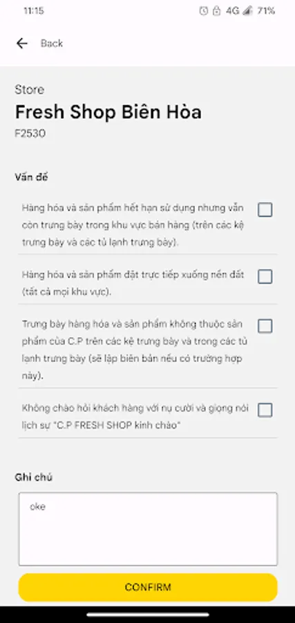 QSC scoring app for CP Fresh Shop