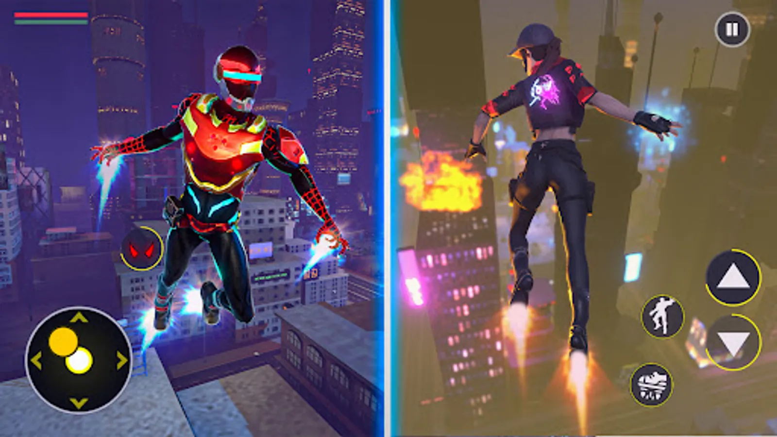 The story of the flash rope hero action games begins when evil Alien Army Robot force wants to enslave man living on earth and they have hired spider mafia Leaders and goons to control the city and the people. Our future is under sabotage; everything is taken over by the spider mafia, the police, the military. It's an open world fighting games no rules or laws, no limits. It’s a straight war between the true avengers of justice vs evil villains. Play the rpg fighting games to avenge and enjoy a free roam open world environment.
