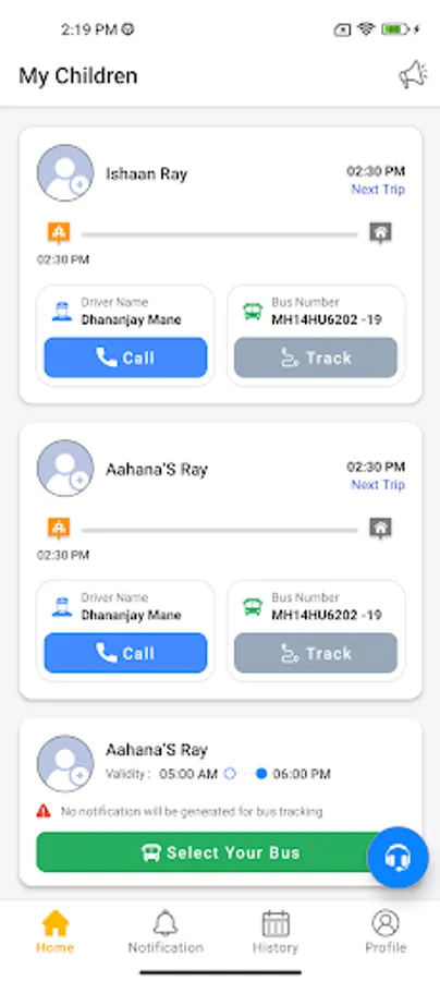 You will receive the real-time location of your children and their school bus route. This helps you to pick up your children from their respective bus stops at right time.
