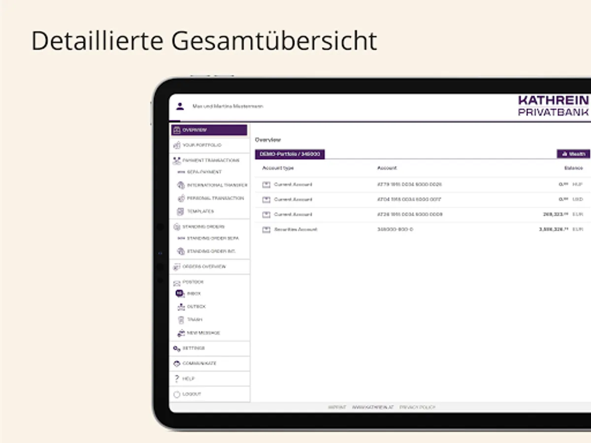 - Access our certified secure mailbox and communicate quickly and confidentially with your account manager. We also like to inform you when new important news is available.