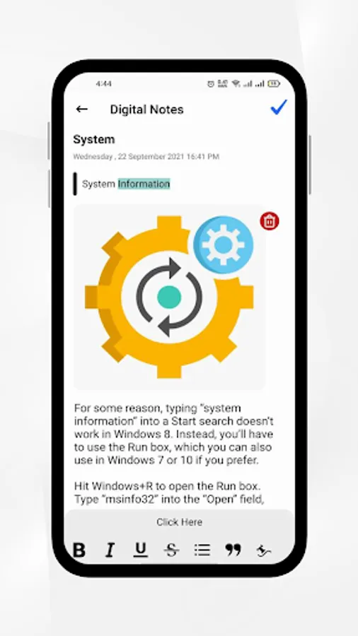 Date π and time β are automatically selected in Digital Notepad when you writeποΈ your notes. You can set the title for your digital notes and then set the subtitle. After adding this, you can write your notes ποΈ. Multiple text ποΈ editing options are available in the Easy Notes π app. You can bold your text underline and many other options.