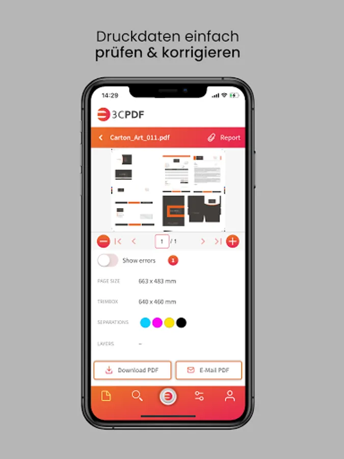 3CPDF can be operated intuitively and without training. You can see information such as page size, color and levels at a glance.