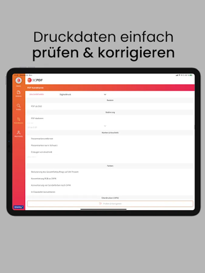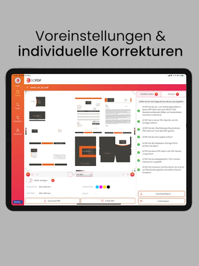 PDF checking and correction has never been so easy! Whether you are a professional or a layman, thanks to modern technology and automated test profiles, you will receive a correct and high-quality print file in seconds.