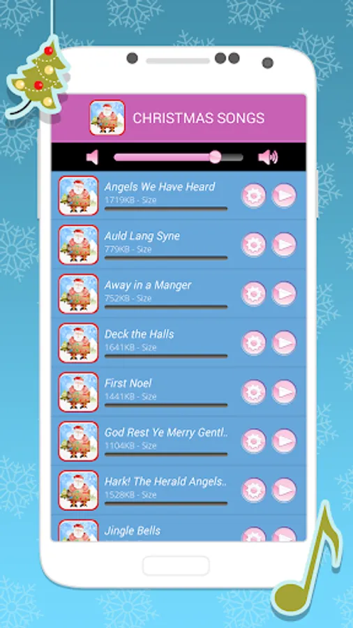 🎅 Easy to use interface – tap once to listen to the sound and press the Settings button to set it!