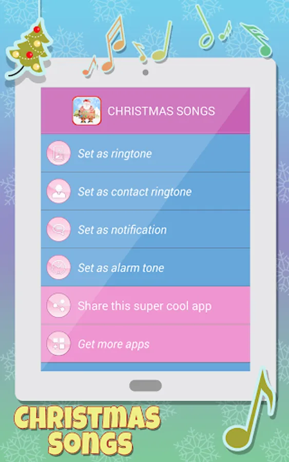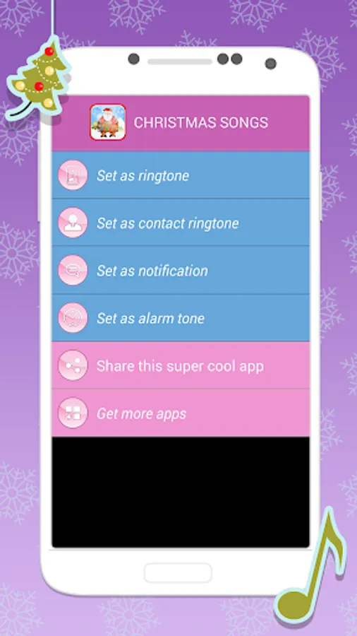 🎅 Set each of the “Christmas ringtones” as a default ringtone, contact tone, SMS notification or alarm clock sound!