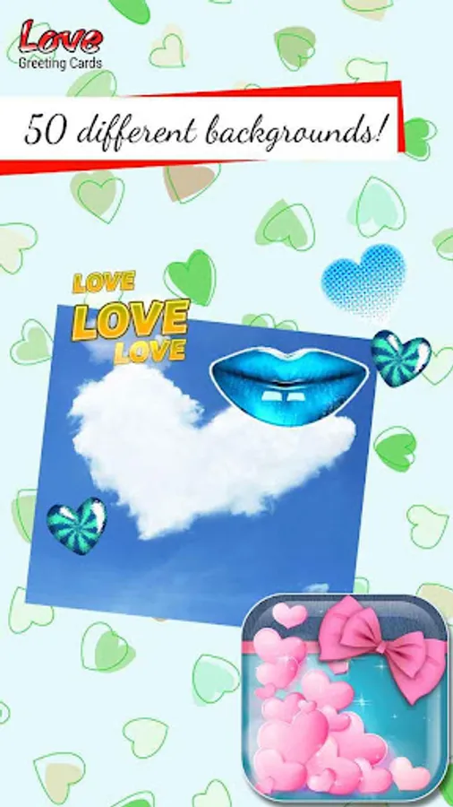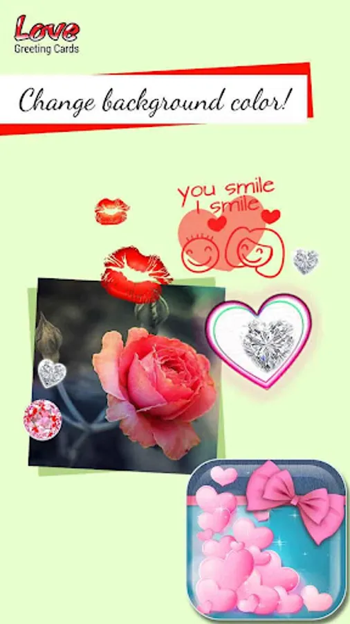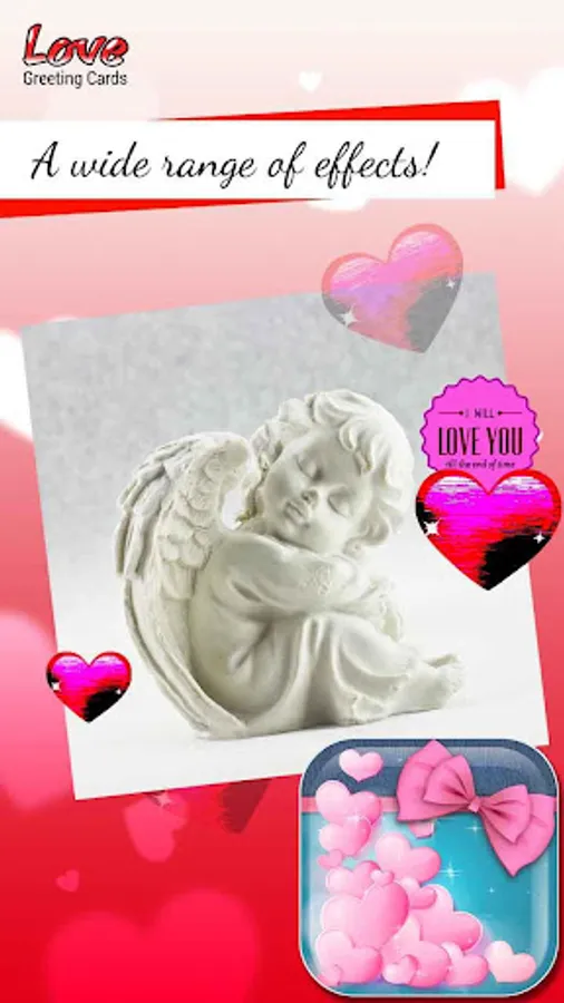 - Mix over 50 decorative images, romantic backgrounds and different color effects to get truly unique and original images with greeting messages!