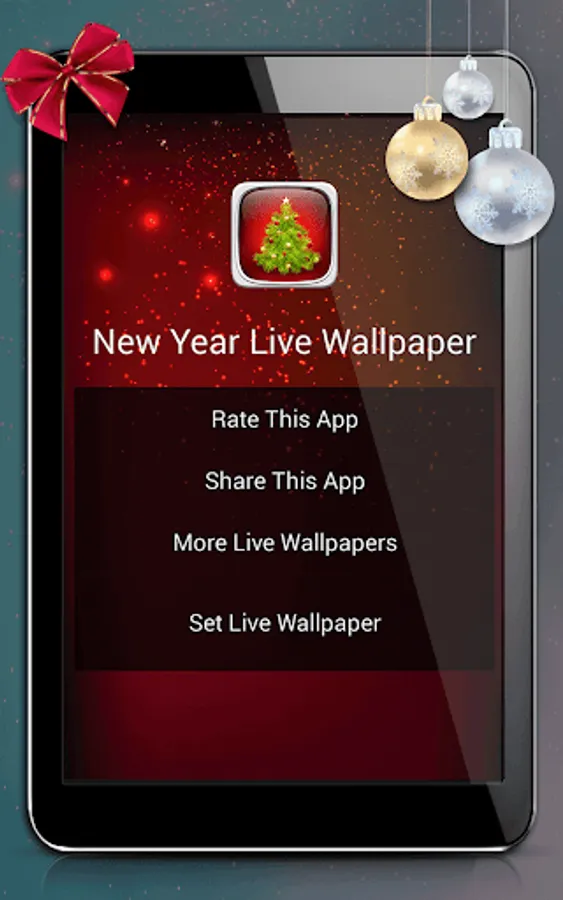 đ Light up the Christmas tree, put all the lovely Christmas decorations, start singing all the famous Christmas carols, because the most festive night of the year is just around the corner! New Year Live Wallpaper is here to welcome you to the âChristmas wonderlandâ and to make this special holiday more bright and festive than any other âChristmas wallpaperâ on the market! Check your âChristmas advent calendar 2016â to see âhow many days until Christmasâ there are! Choose a perfect âChristmas tree live wallpaperâ and let the lovely Christmas lights be your guide all the way to the holy night! Play all of your favorite Christmas songs and enchanting Christmas music in the background and watch all of the beautiful New Year's Eve wallpapers and backgrounds on your phone and tablet â one of the best Christmas apps is here just in time for the holiday season!