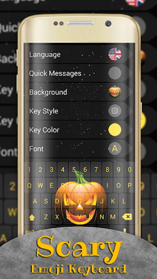 🎃 Make your own keyboard – select your favorite “keyboard themes with emojis”, add quick messages, change the key style and color, select the look of the fonts and keyboard sounds and enjoy!