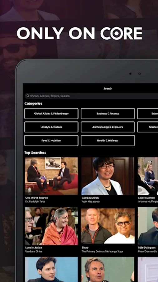 Home to 1000+ original titles, at CORE we strive to inspire. Watch explorations from new innovations to ancient knowledge. Worldly expeditions, thought-provoking conversations, real-life narratives, and dynamic practices.