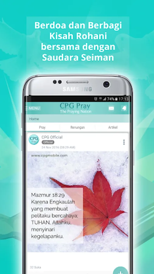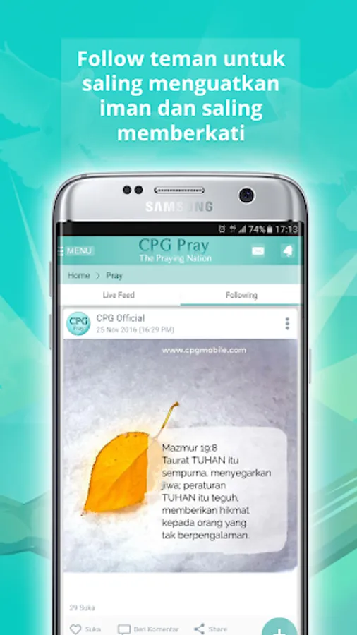 Download dan alami sendiri pengalaman rohani yang baru di smartphone Anda melalui www.CPGpray.com