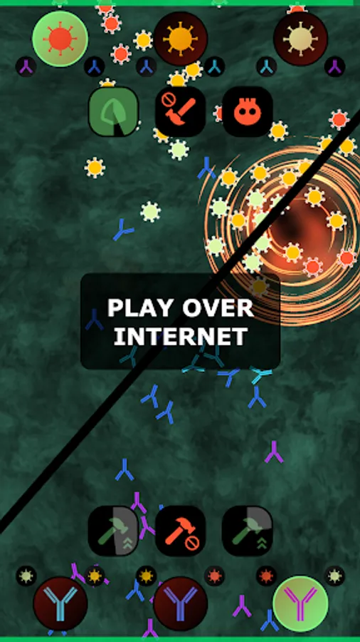 Organism is fighting against disease, take a side and conquer the battle! Play as a threatening virus, contaminating everything it touches, or as a mighty immunity, sending antibody troops to the frontline of the war for their homeland.