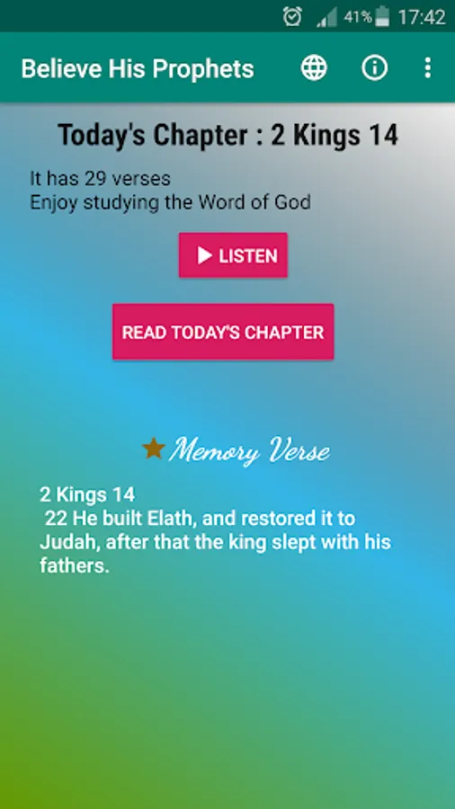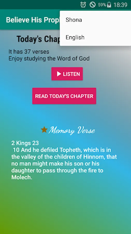 SDA Believe His Prophets is an application to assist in following up with the Seventh Day Adventist Church revival and reformation programme of Daily Bible Chapter study