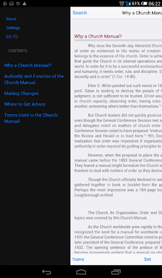 Seventh Day Adventist Church Manual 19th edition Digital Application for Android is a softcopy of the SDA Church Manual.