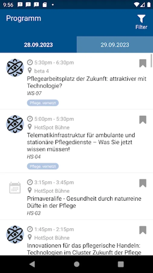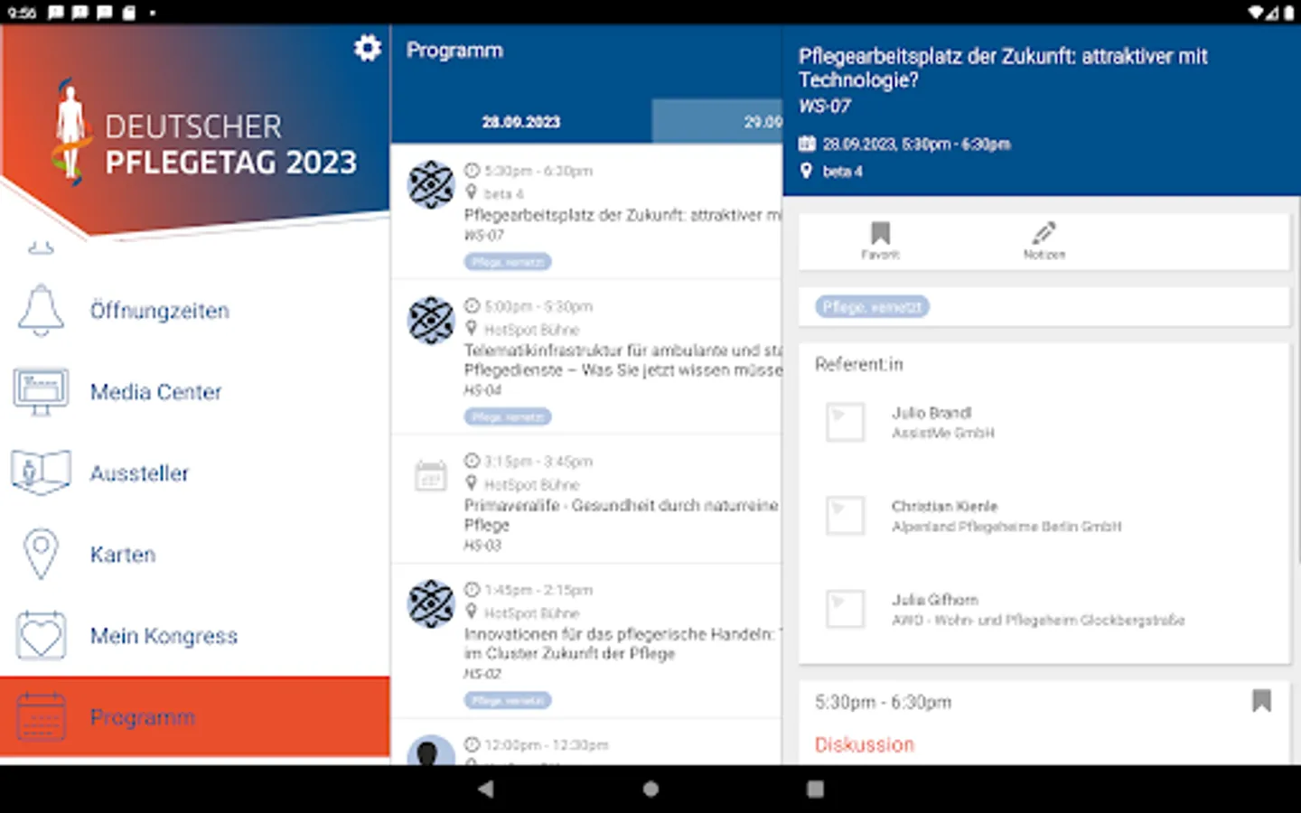 The app provides all information about the care day in an interactive, informative and comprehensive way. Create your own schedule, access the current room and speaker information at any time and find a lot of useful information about the 10th German Nursing Day at a glance.