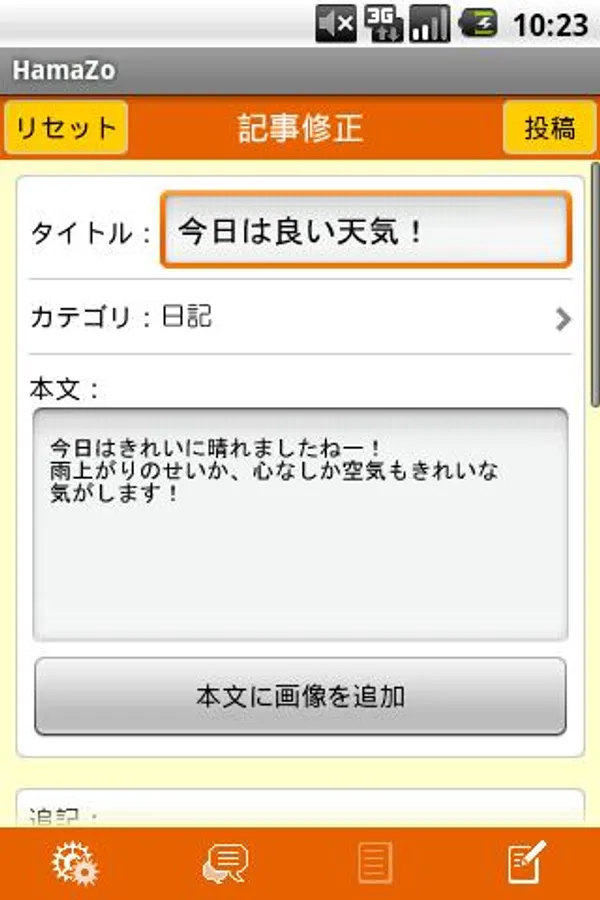 Image is also easily inserted or camera shooting, by simply selecting from the image list.