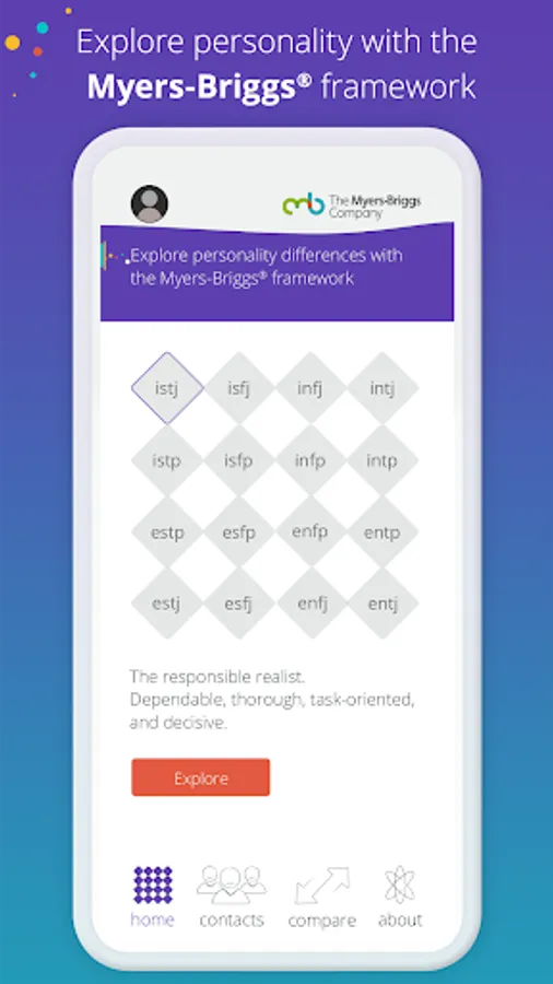 Please note: At this time, the Myers-Briggs® App can only be unlocked if you have an access code provided by a certified or educationally eligible MBTI® practitioner. The app is a resource that practitioners provide to participants after an MBTI® feedback session or workshop to encourage the real-world use of type.