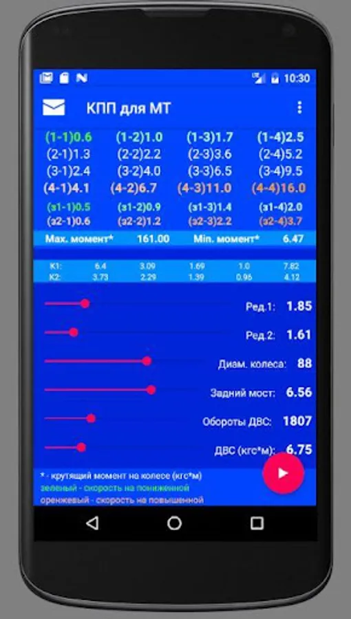 During the construction of mini-tractor you need to make a payment transmission. This app will calculate and determine what combination of PPC - optimized for your traktorishki.