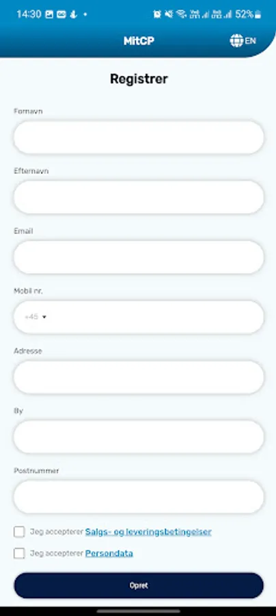 Almost all functions can be arranged on the app instead of mitcp.dk.