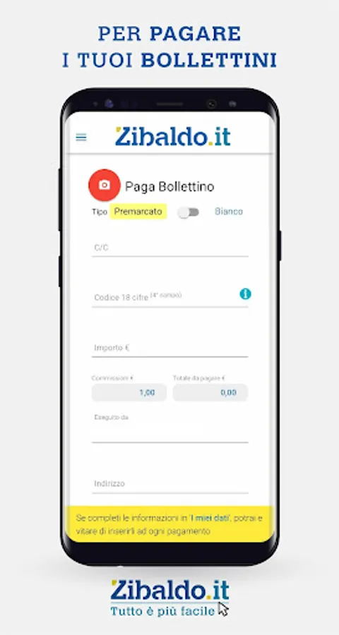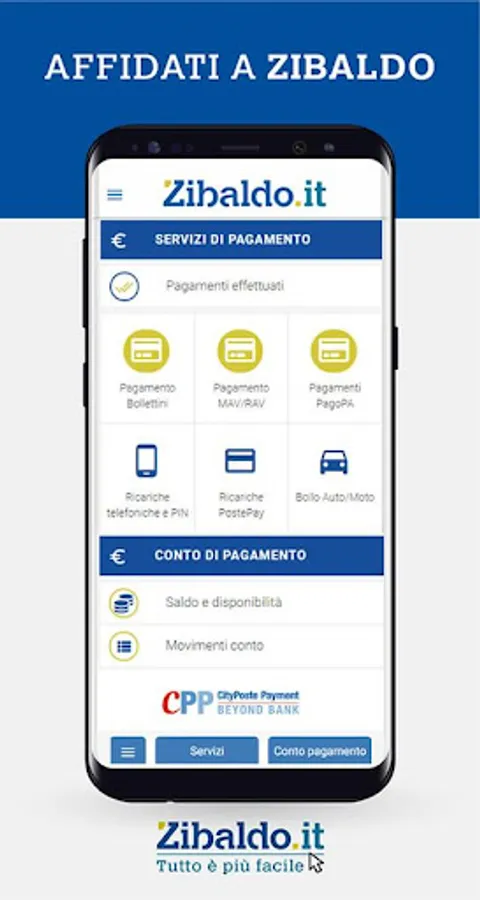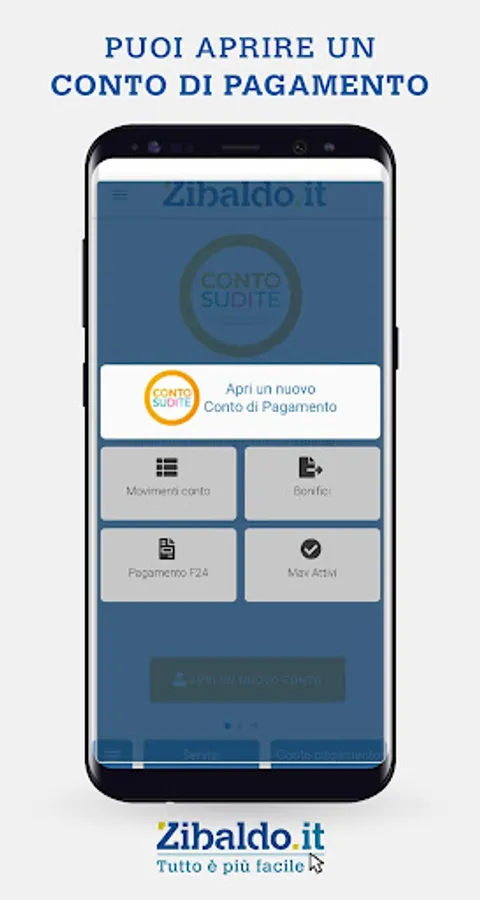 With the ZIBALDO APP it is also possible to open "Account on You Free" at zero costs and "Account on You Business" with a minimum fee, with which you can make payments, plus F24, arrange transfers and more.