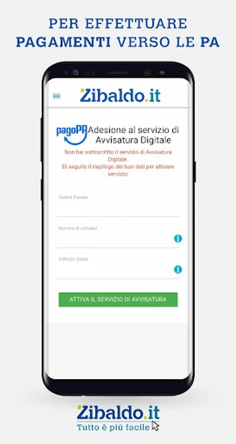 In order to make your payments in total safety, in compliance with the required legislation, we need your tax code and a few other data, for a double verification registration: