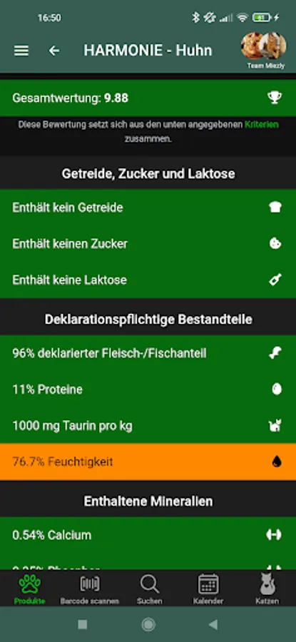 A healthy diet is important for your pet. This app transparently determines a score based on fixed criteria and gives you an assessment of whether you can feed the product without hesitation or whether you have to pay attention to something. You can read about how the score is calculated in the app. Use this only to support your buying and feeding behavior.