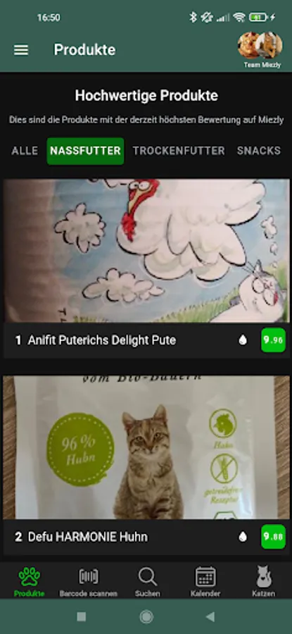 Miezly - your app for high-quality cat food. Simply use the built-in barcode scanner with your camera and find out directly whether it is high-quality food.