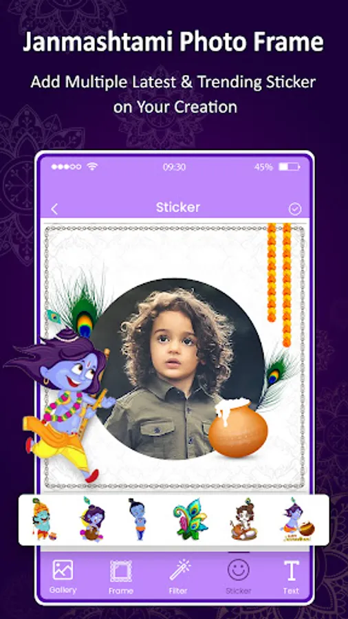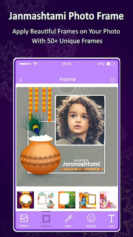 Decorate your photos with these incredible Janmashtami photo Frame or Krishna Photo Frame and you can save the photo, share with friends and family.