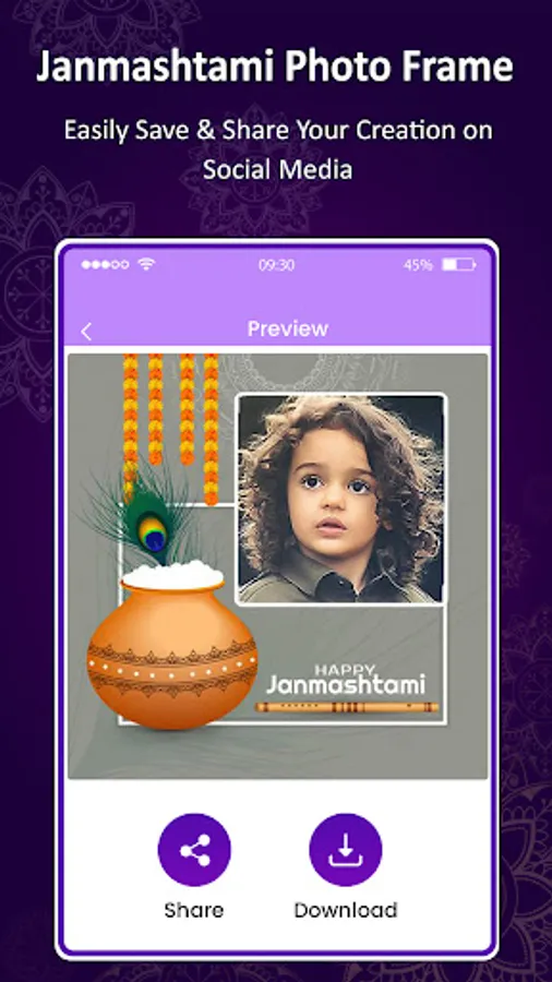 - Share your Janmashtami photo frame with your friends or family members via social network.