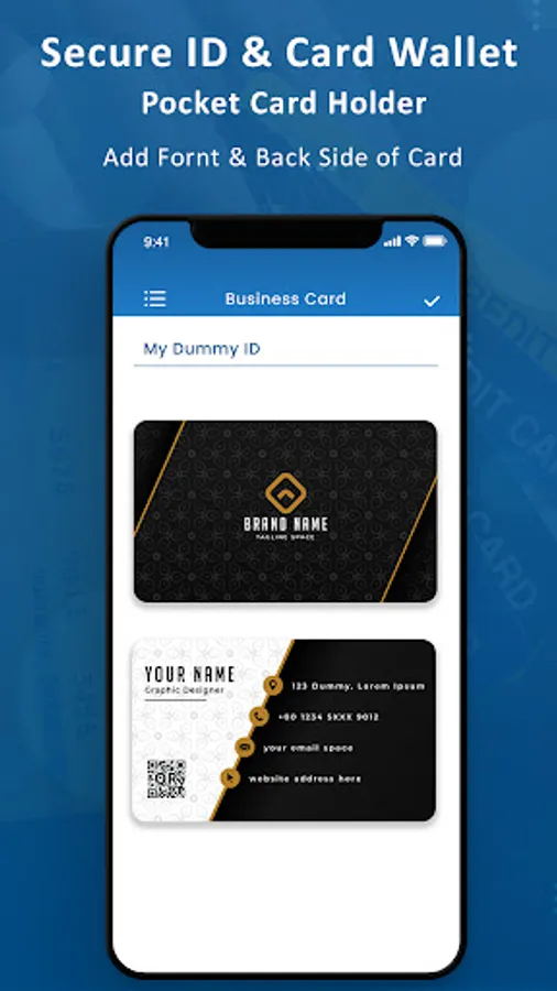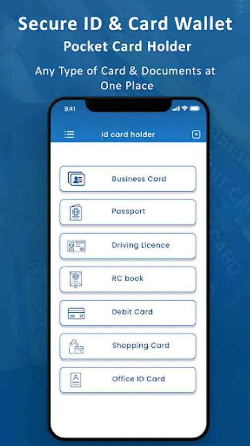 No need to keep a wallet with full of cards and ID cards. To download, share & make it best ID card wallet to hold your Loyalty card, credit & debit card, Driving License, business cards, Identity cards, bank cards, visiting cards, voter ID card with photo.