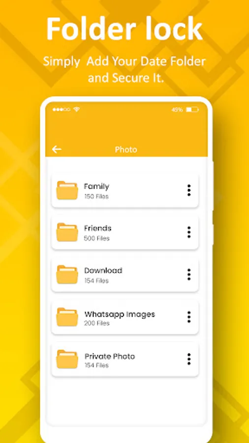 File Lock : Folder Password Lock app lets you password-protect your personal files (ex: photos, videos, documents, wallet cards, contacts, notes and audio recordings, etc…) in your Android Phones.