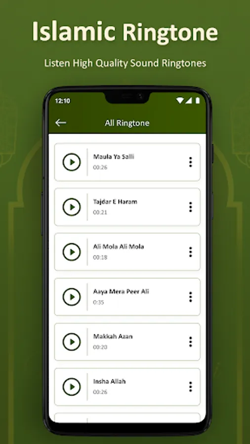 - 100+ popular Islamic ringtones.