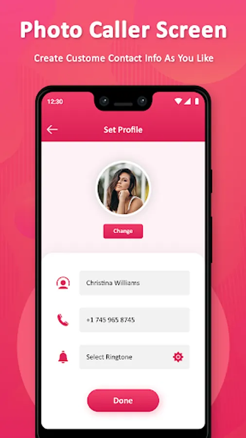 Before changing the background from the phone gallery, users have to select a particular image size like a square, 3:4, 4:3, 9:16, 16:9, 7:5, circle. Users can choose their contact photo from their phone gallery & by taking the photo from the phone camera. Users can set a custom ringtone for the contacts of their android phone device.