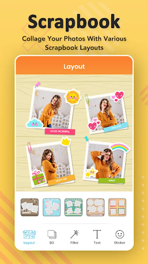 Scrapbook collage maker is the most Stunning and Popular Pic Editor Photo collage & Photo Grid : Selfie Camera app with many amazing effects and filters that make your photos to be art Photo! Scrapbook collage creator will give a unique style to your clicks with multiple filter effects.
