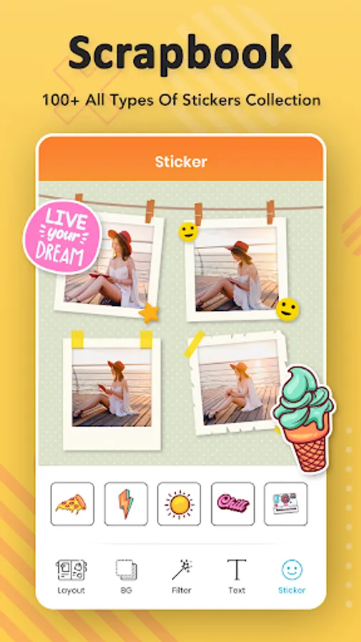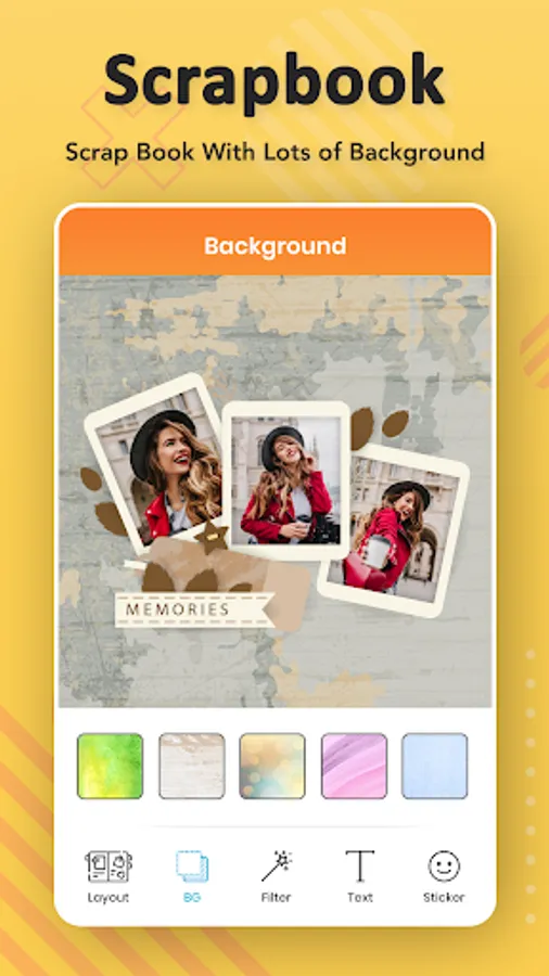 Scrapbook Photo Album : Photo Scrapbook app allows you to add photos, texts, stickers, frames and filters to a customized with beautiful background. The Scrapbook is very easy with a simple user interface and can stitch a number of pics with multiple and creative scrapbook ideas.