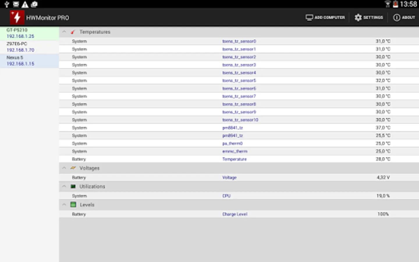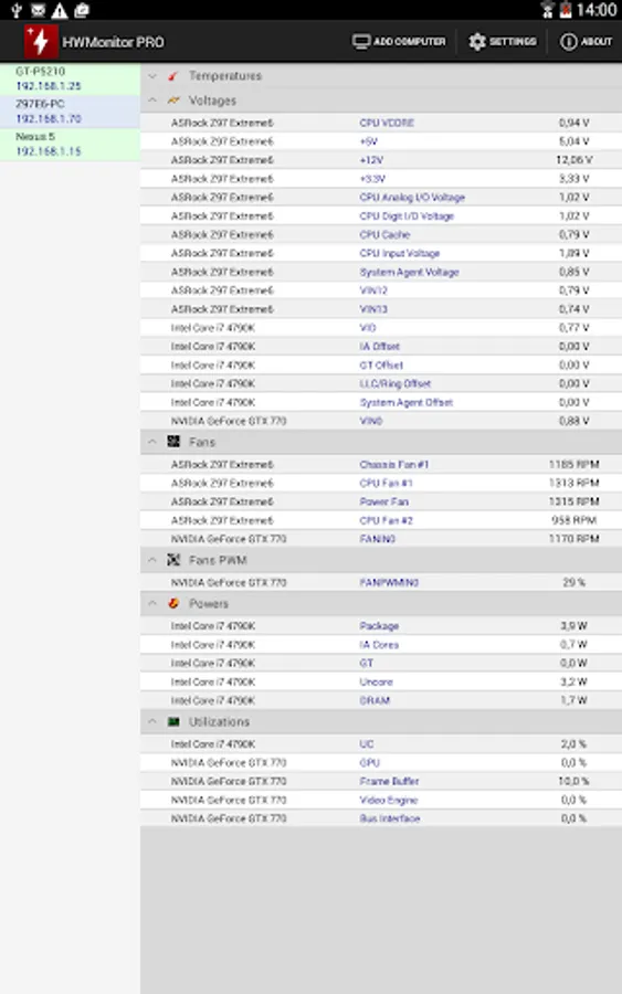 In addition, HWMonitor PRO allows to monitor up to 10 systems (Windows PC or Android device) from your Android device. Steps are as following :