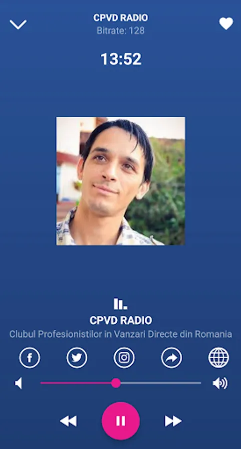 The application does not work without an Internet connection. The "CPVD" radio station transmits programs that will be announced previously within the community group "The Professional Sales Club in Romania". The Romanian and foreign radio stations broadcast live 24 hours a day! Listen live radio anytime and anywhere! using your phone