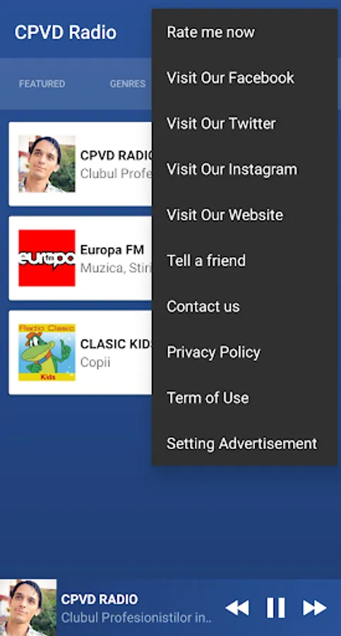 Thank you for listening to radio stations in Romania and abroad using the "CPVD RADIO" application.