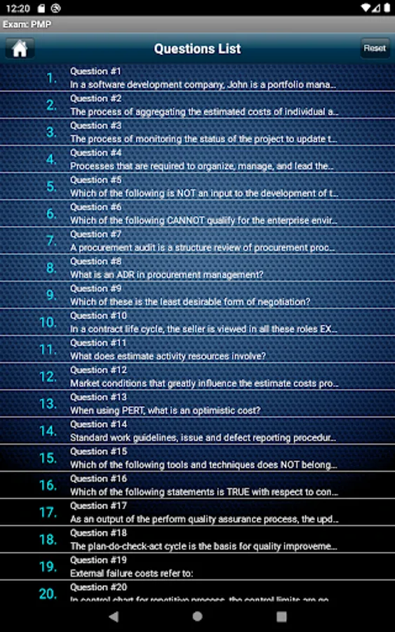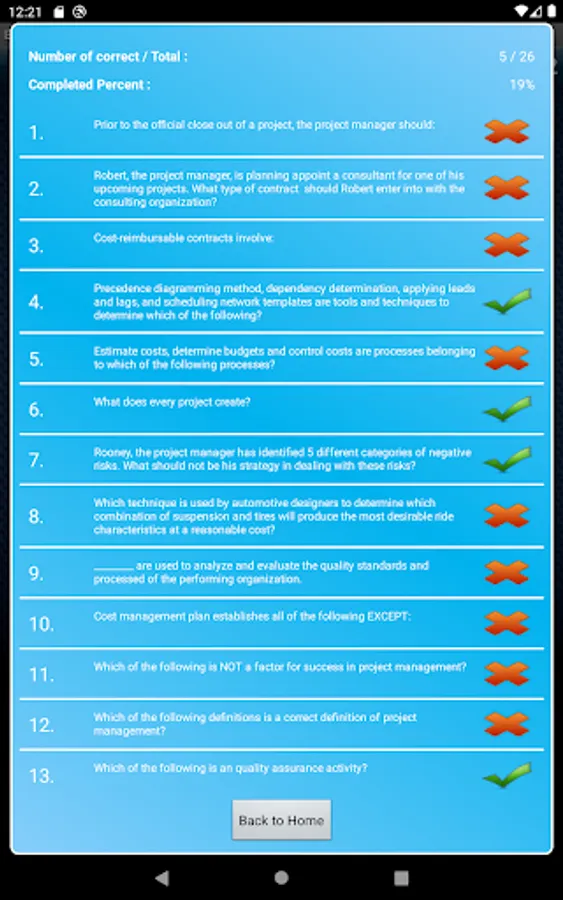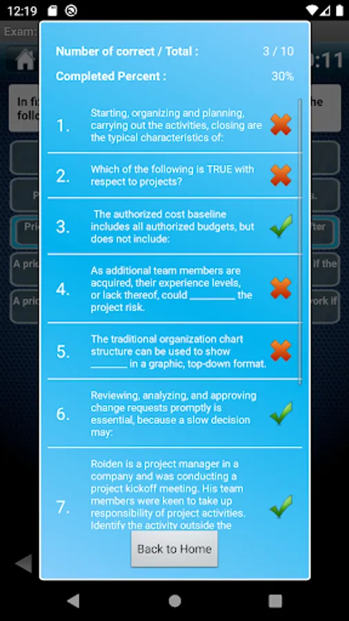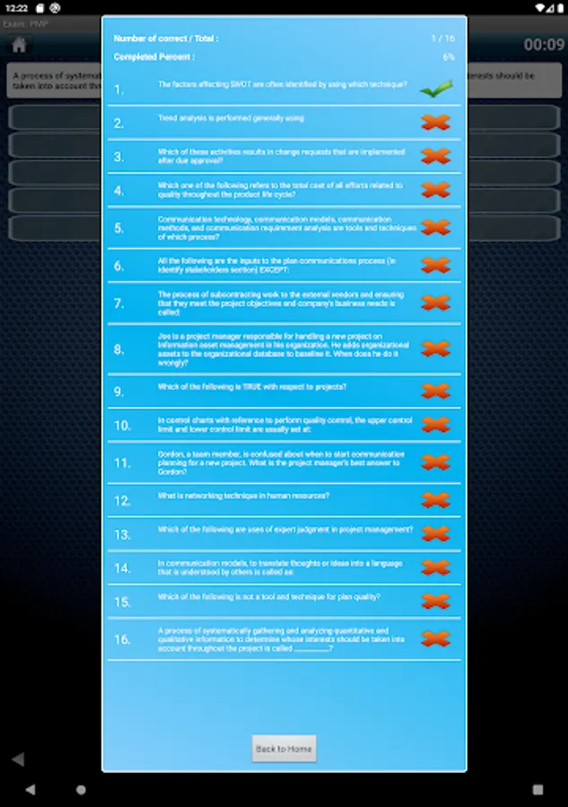 - Test mode: Try a test with selected number of questions: user is able to review your result together with failed questions and what is the correct answer.