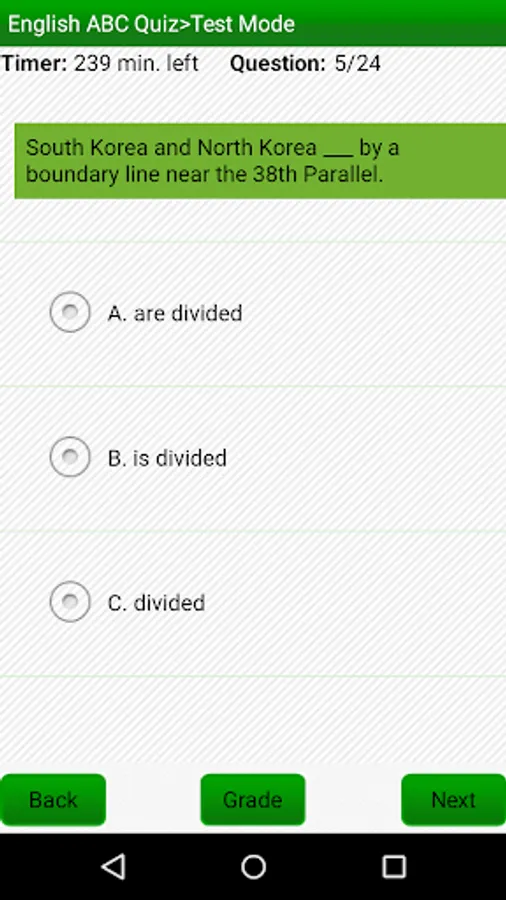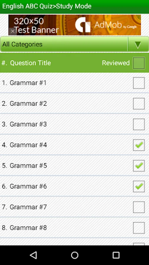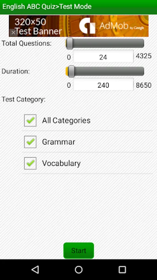- Test mode: you can select number of questions and the time you want to take a test, you can also choose the categories. The app will select random questions in the database for you.