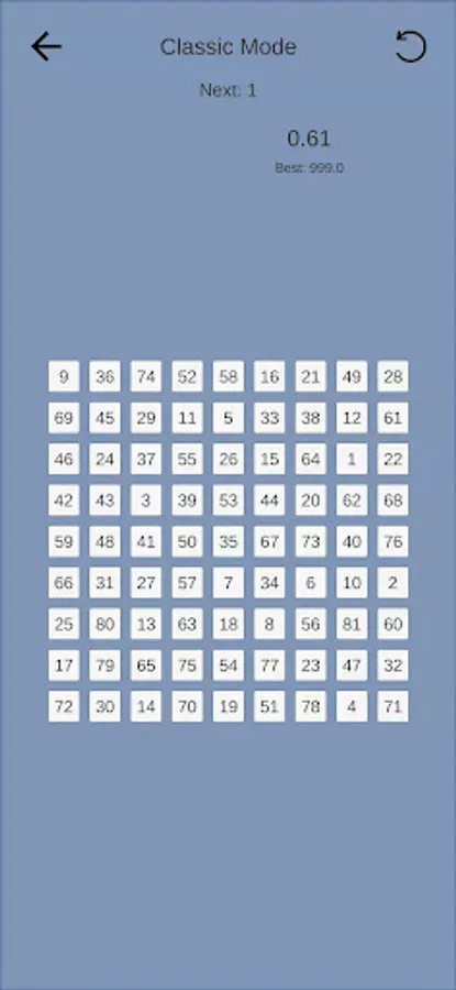 On this game, the Schulte table is available for free, there are various settings: sizes, colors, letter tables and numeric.