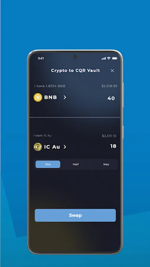 – settle exchanges with the App or use transfer codes to everywhere CQR Vault is accepted