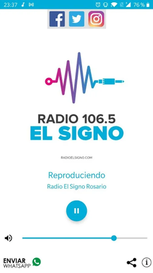 Radio El Signo 106.5 is in the west area of the city of Rosario. We offer selected music 24 hours a day, the hits of the 80s, 90s and 2000s. Also selected national and Latin Rock. We have space with live programs, both sports, general interest and political.