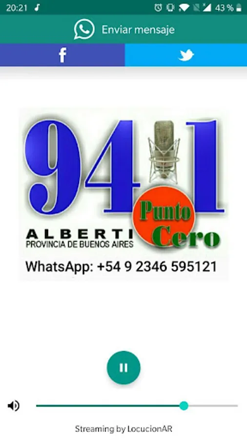 Since 2007 went on the air in Alberti Pcia Buenos Aires Zero Point 94.1 FM and broadcasting events and problematic environmental partner tour of Latin America.; The Environmentalist. Radio do with commitment. the style with ideals that sotienen facts in the report and raise awareness
