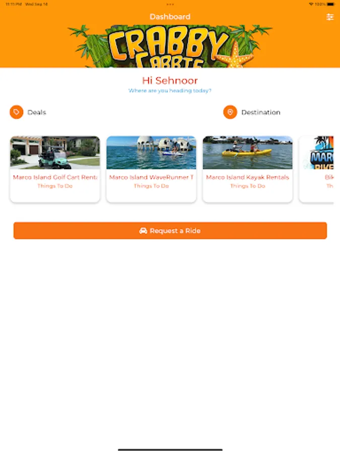 1. Discover: Download the Ride CrabbyCabbie app to browse our local recommendations and exclusive deals.